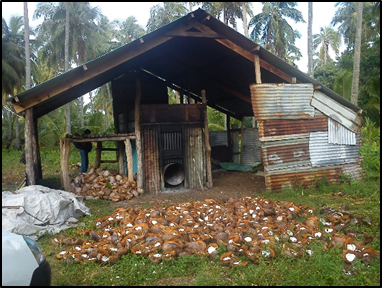 La filière coprah commence à s’organiser au niveau des livraisons. Soit les producteurs effectuent eux-mêmes toutes les étapes de production jusqu’à la livraison soit les producteurs vendent leur récolte à des propriétaires de fours (qui peuvent aussi être des producteurs de coprah).